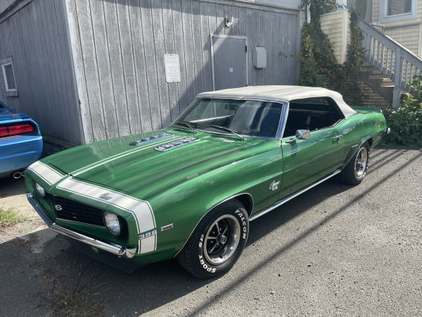 $64,900 Rally Green SS396 convertible 4 speed with black deluxe interior. Very sharp car. Equipped with PS, Power front disc, 12 bolt rear, Power top, console, tach dash, Bluetooth radio and more. Replacement 402 motor t