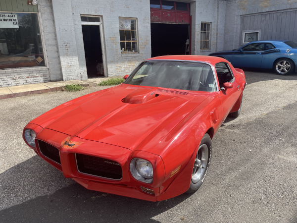 SOLD Solar Red 400 with Turbo 400 trans, PS, PB, buckets, console, hideaway lights, rally 2 wheels, redlines, vinyl top and more. 1 owner for almost 40 years. Original matching number drivetrain with only 78k miles.